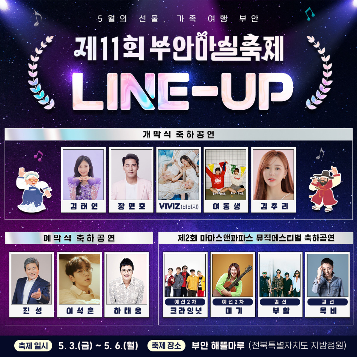 부안 마실축제의 개막식과 폐막식을 장식할 최고 라인업